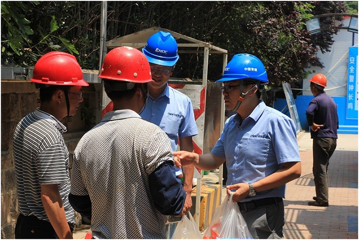 After the meeting, based on the guiding concept “the core is learning and the key is doing”, Song Pengfei led all Party members to give out the daily necessities such as shampoo and washing powder etc. and labor protection appliances to the front-line workers and ask about the living conditions and working conditions of the front-line workers, which made the front-line workers feel warm.