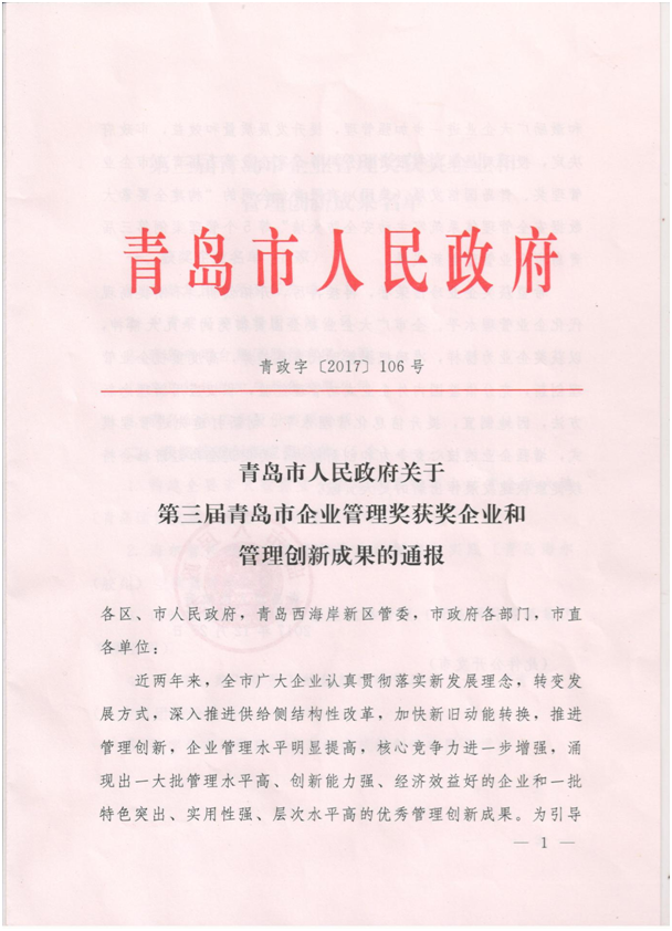 “Qianjian +” model won the Qingdao Enterprise Management Innovation Achievement Award