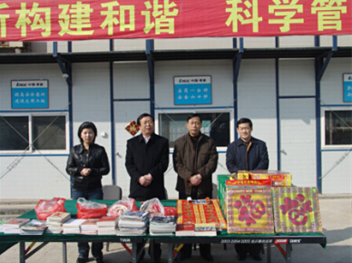 2月4日(農(nóng)歷臘月二十八),集團(tuán)公司黨委書記黃佳高帶隊(duì)到海逸景園工地慰問家在四川、湖北等地,因受雪災(zāi)影響無法回家過年的農(nóng)民工。為讓他們過好春節(jié),工會、團(tuán)委精心準(zhǔn)備了年貨、春聯(lián)、書籍等慰問品,并在正月初二為農(nóng)民工準(zhǔn)備了專場電影?!肚鄭u財(cái)經(jīng)日報》、《青島晚報》、青島電視臺等媒體相繼報道了集團(tuán)員工踴躍為南方災(zāi)區(qū)人民捐款,并積極組織向不能返鄉(xiāng)的農(nóng)民工獻(xiàn)愛心活動的新聞。(企業(yè)發(fā)展部 )