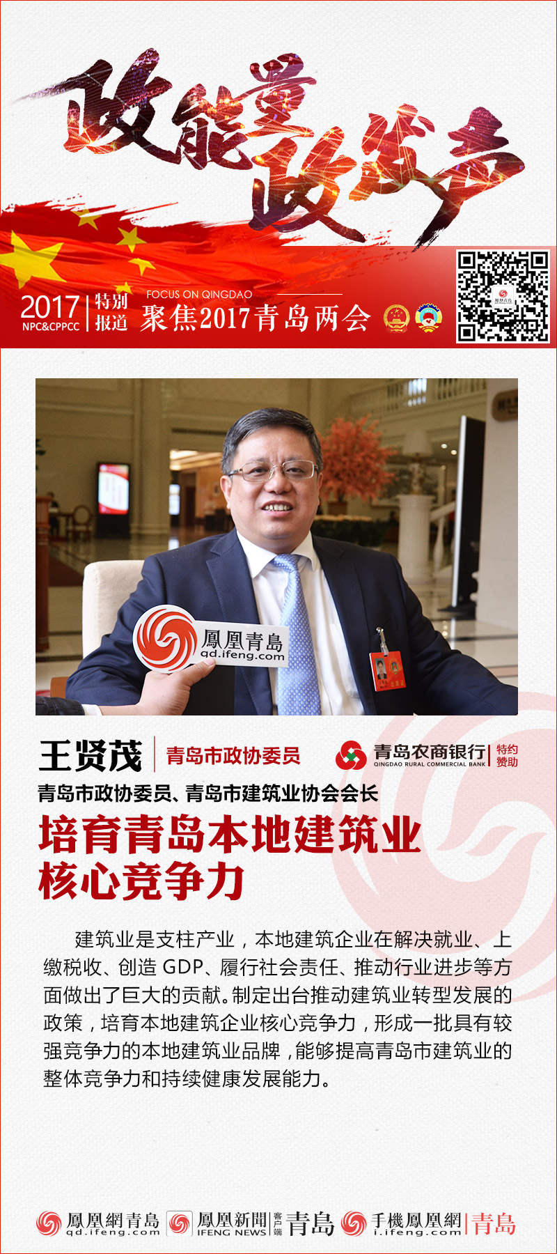建筑業(yè)是青島市的支柱產(chǎn)業(yè),也是人民的家園創(chuàng)造者。來(lái)自國(guó)清控股集團(tuán)有限公司總裁兼青建集團(tuán)股份公司董事長(zhǎng)王賢茂,同時(shí)也是青島市建筑業(yè)協(xié)會(huì)會(huì)長(zhǎng),對(duì)如何促進(jìn)青島市建筑業(yè)的持續(xù)健康發(fā)展,他提出了許多建議。